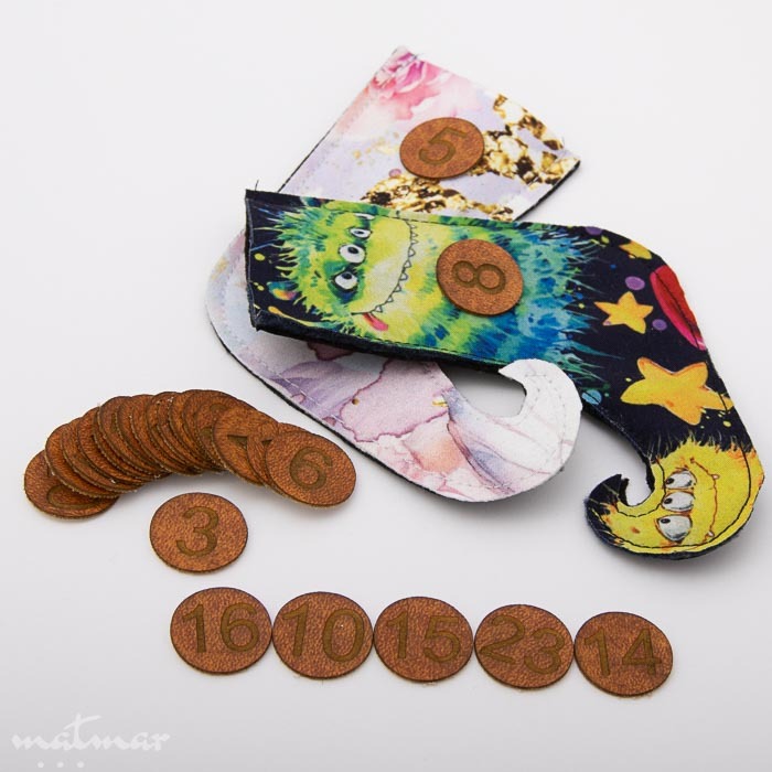 Advendikalendri numbrid on valmistatud vastupidavast kunstnahast